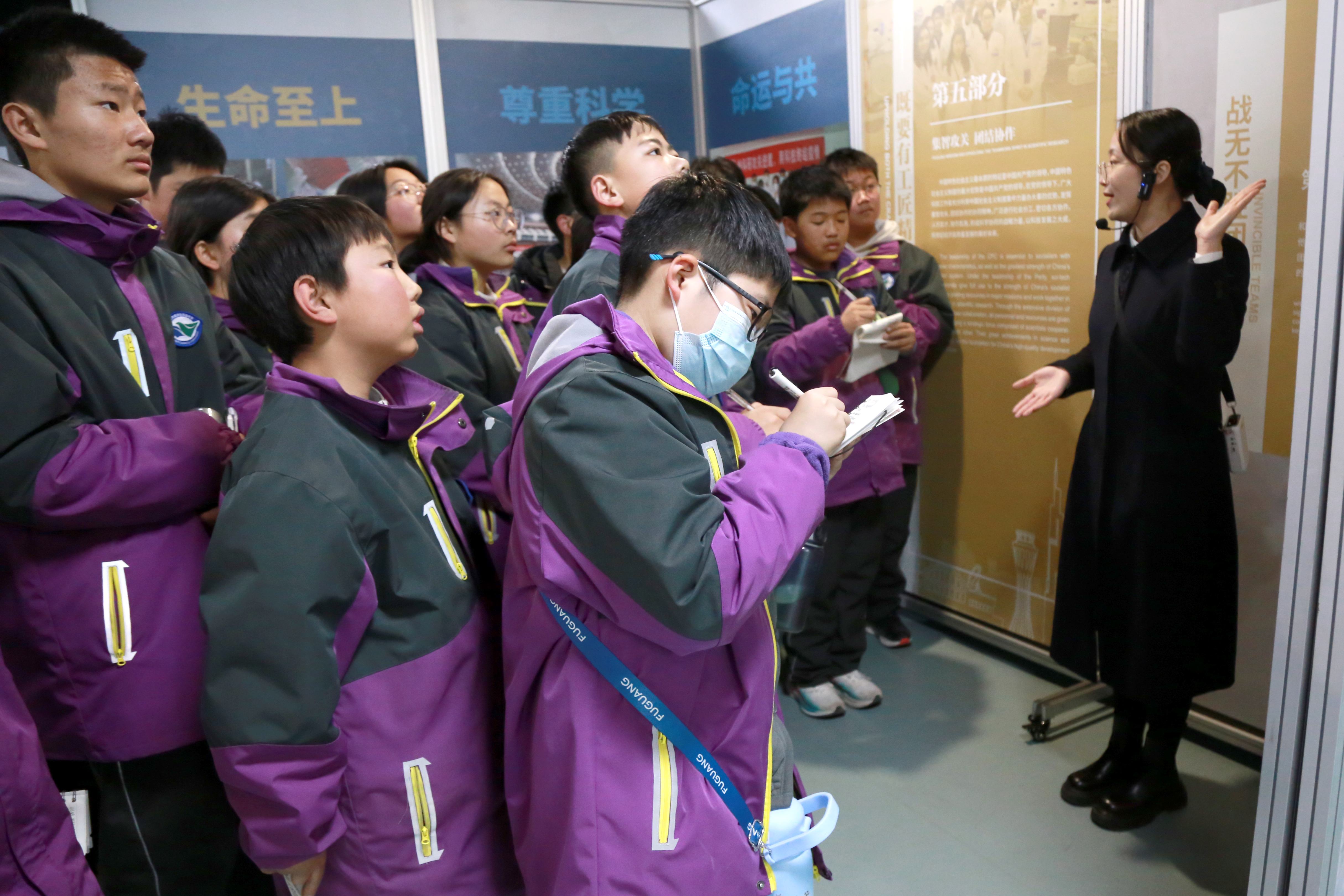 本次展览以党的百年奋斗历程为时代背景,设立以爱国、创新、求实、奉献、协同、育人为主题的6个展区、17个单元,通过丰富的历史图片、珍贵实物串联起一代代科技工作者心向党、为人民、攻难关、攀高峰的感人篇章。展览得到了我市各中小学学校的积极响应,开展两周已有近千名师生走进科技馆。孩子们神情专注,时而驻足凝视,时而低头记录,深度解读其中的精神密码,纷纷表示:以后要刻苦学习,心向祖国,将来用真才实学报效祖国!