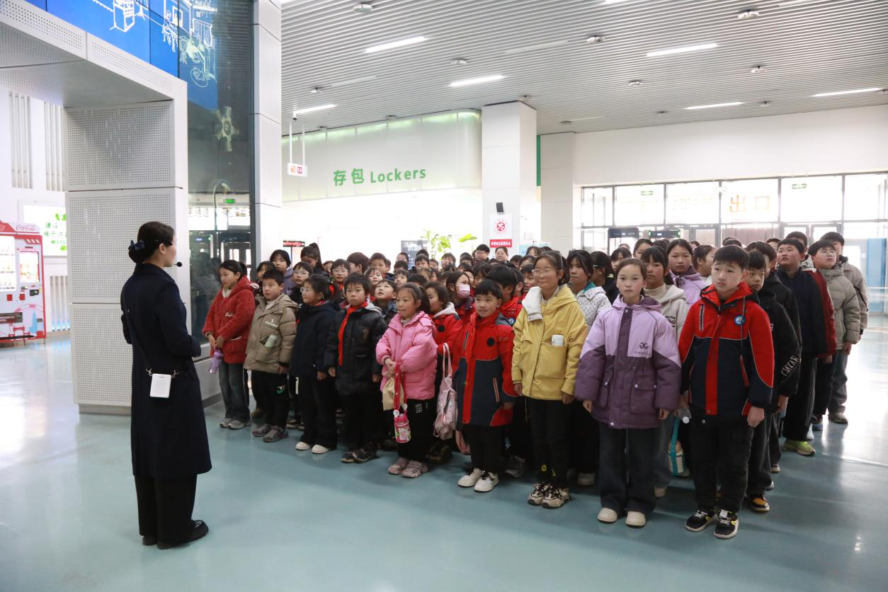 活动现场,标志性展项“科技之门”直观呈现科技发展迭代历程,迅速点燃孩子们的探索热情。在科技辅导员的引导下,师生分为两组走进不同展区,通过聆听讲解、亲手操作展品展项,感受光的折射与色散、电的奇妙反应,再到生命的演化奇迹、宇宙的浩瀚无垠,在“看、听、摸、思”多维体验中答疑解惑,拓宽科学视野、掌握科学知识。