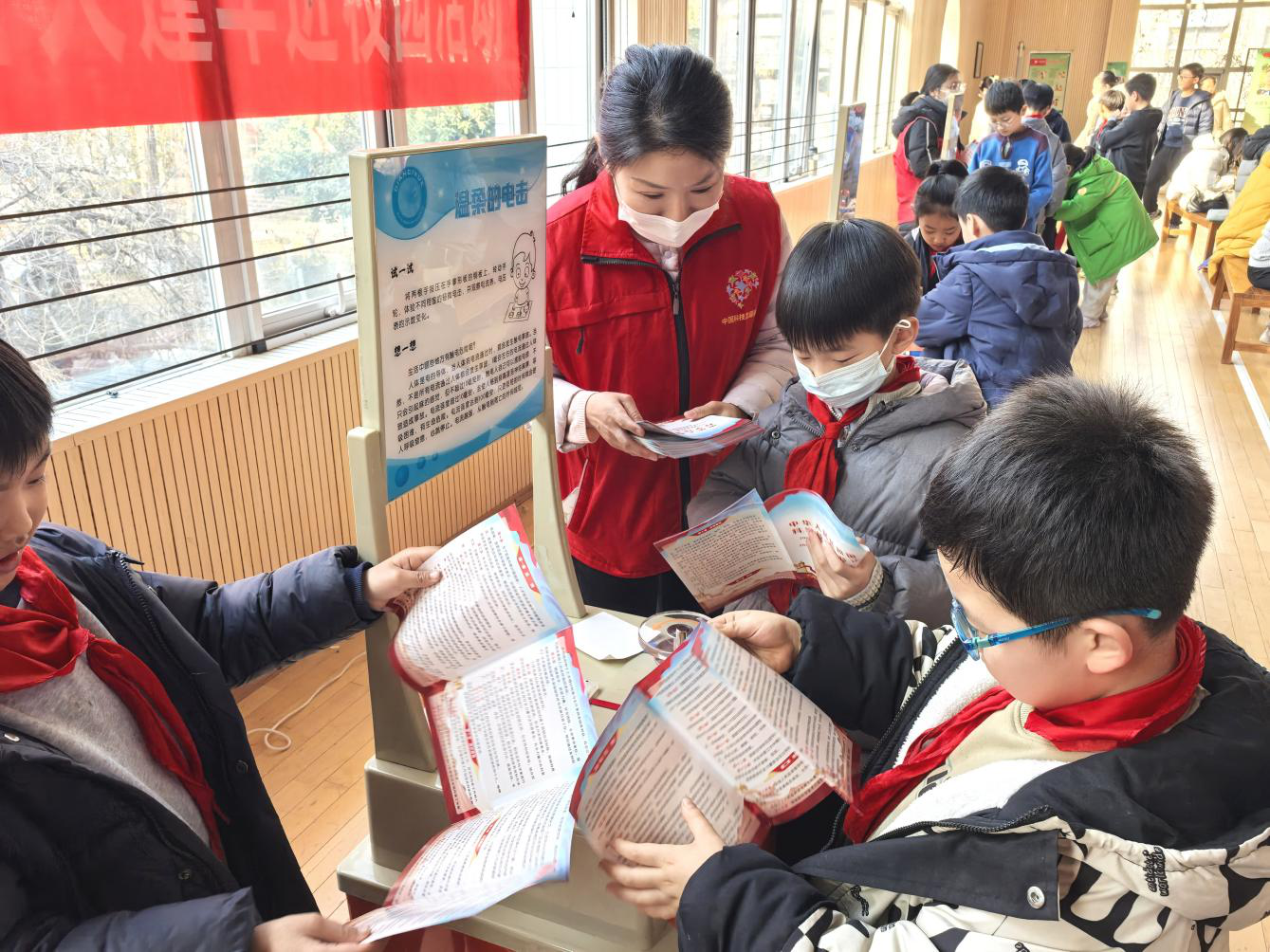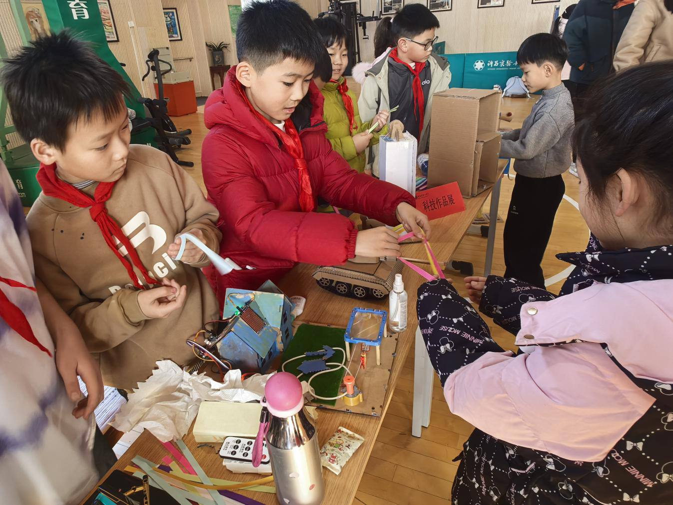 活动同步开展了新修订的《中华人民共和国科学技术普及法》宣传活动。该法于2024年12月25日正式施行,强调科普与科技创新同等重要,至今已实施一周年。科普志愿者们通过发放宣传页、讲解要点,将法治保障科普的理念深入师生心中。同时,学校展示了学生的科技创作成果,包括科技创新小发明、手工模型、科学小实验等,体现出孩子们活跃的创新思维与扎实的动手能力。