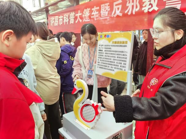 活动期间,反邪教警示教育宣传同步开展。现场通过摆放反邪教科普知识展板、发放宣传手册、现场咨询讲解等方式,向师生系统普及反邪教知识,深入揭露邪教组织的危害,切实增强师生识别与抵制邪教的意识和能力。9Fn许昌市科学技术协会